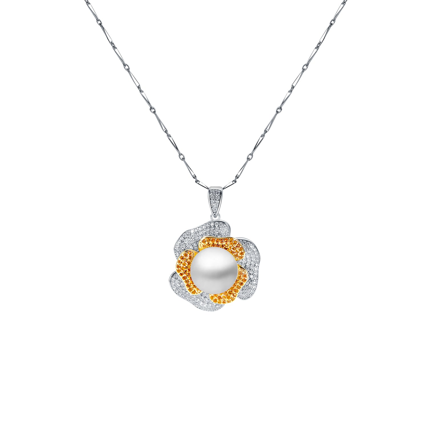 Camellia Sterling Silver dual-color-plated with Gemstone Pendent