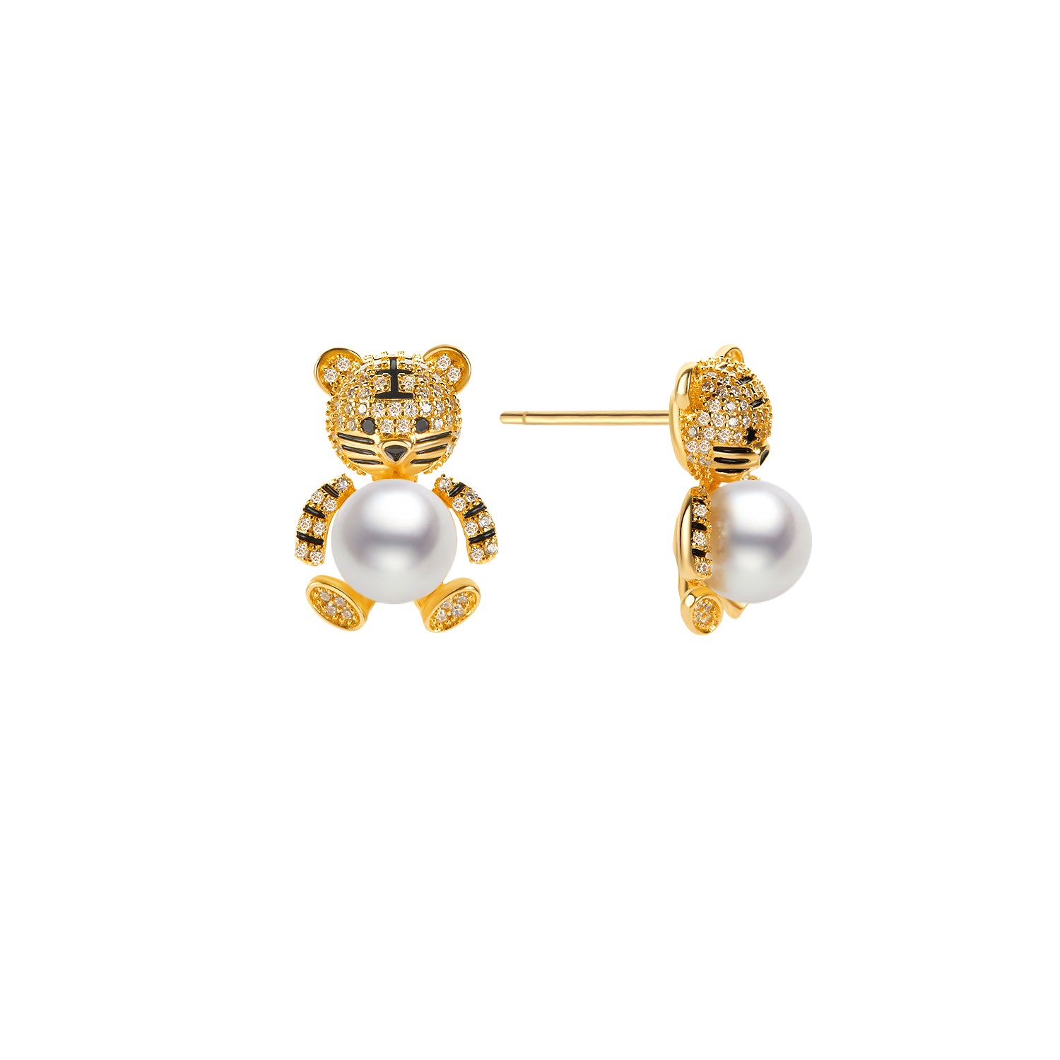 Gold Plated Sterling Silver with Gemstone Tiger Earrings